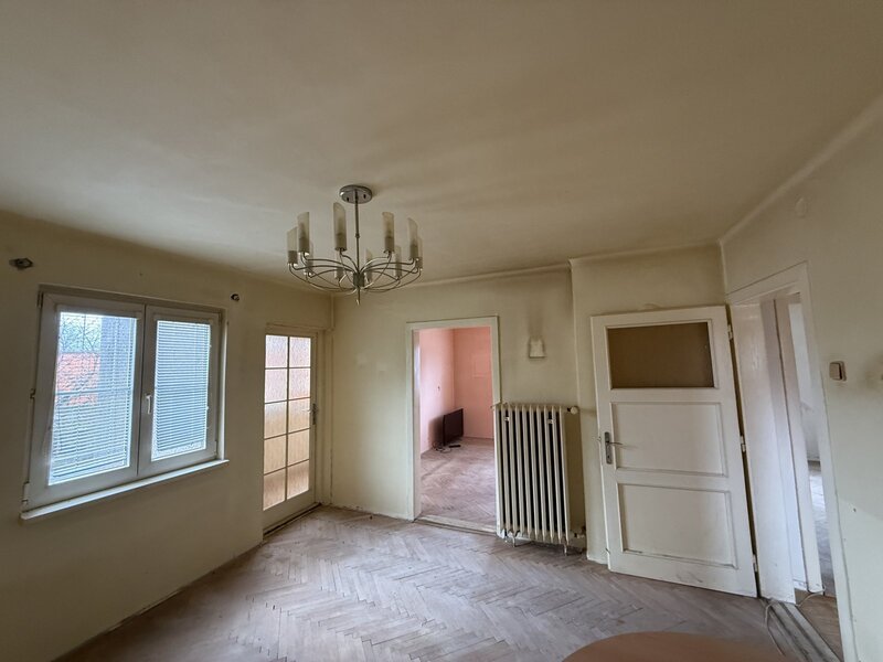Tři pokoje, koupelna s vanou a s WC, kuchyně, pracovna, velký sklep
