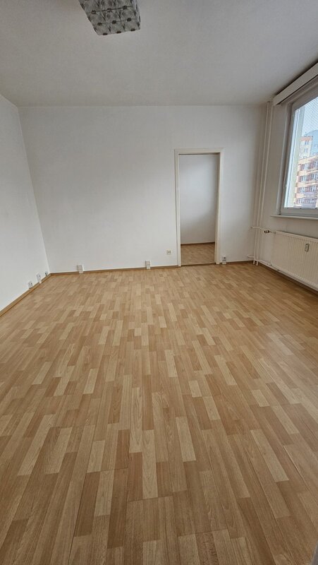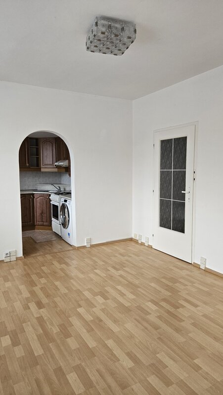 Přes obývací pokoj vstup do ložnice a do kuchyně. Na podlaze plovoucí