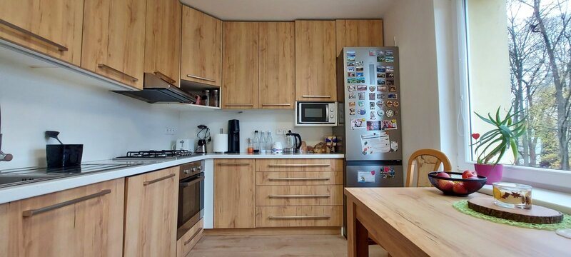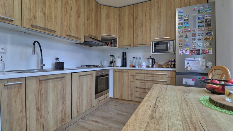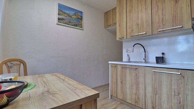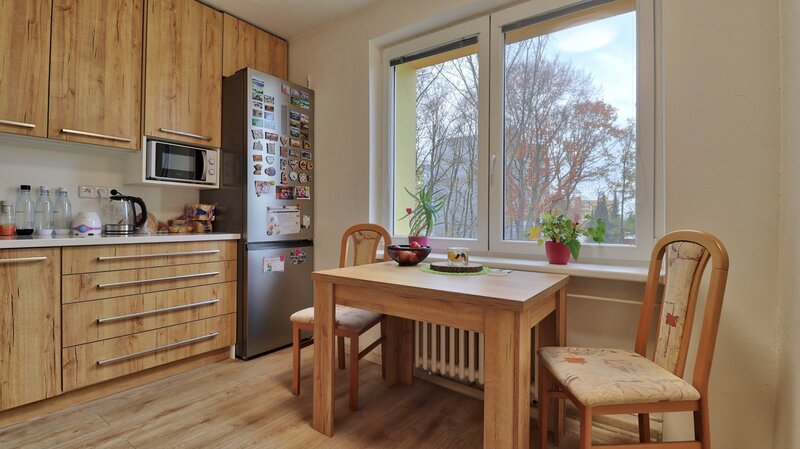 Kuchyně je vybavena kuchyňskou linkou se spotřebiči, byt lze po dohodě